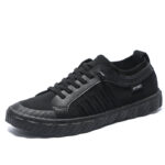 These stylish black sport casual shoes combine minimalist design with practical functionality, perfect for everyday wear and light activity. The upper features high-quality breathable knit fabric, ensuring a lightweight and comfortable fit while keeping your feet cool and dry. Enhanced with a reinforced protective toe and textured side panel design, these shoes offer both style and functionality. The durable rubber sole provides excellent anti-slip performance and superior traction, delivering a steady stride. With a flexible and lightweight structure, these sneakers guarantee all-day comfort.
