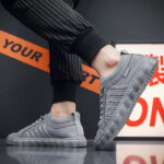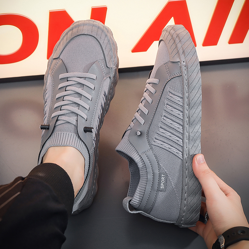These stylish grey sport casual shoes combine minimalist design with practical functionality, perfect for everyday wear and light activity. The upper features high-quality breathable knit fabric, ensuring a lightweight and comfortable fit while keeping your feet cool and dry. Enhanced with a reinforced protective toe and textured side panel design, these shoes offer both style and functionality. The durable rubber sole provides excellent anti-slip performance and superior traction, delivering a steady stride. With a flexible and lightweight structure, these sneakers guarantee all-day comfort.