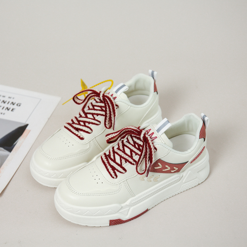 These stylish chunky sneakers feature a clean white base accented with bold red details and matching laces, delivering a vibrant and modern look. Made with premium synthetic leather, the upper is soft, durable, and breathable. The thick cushioned sole provides excellent support and shock absorption, ensuring a comfortable walking experience. Whether for daily commutes, casual outings, or trendy streetwear, these sneakers will elevate your style effortlessly.