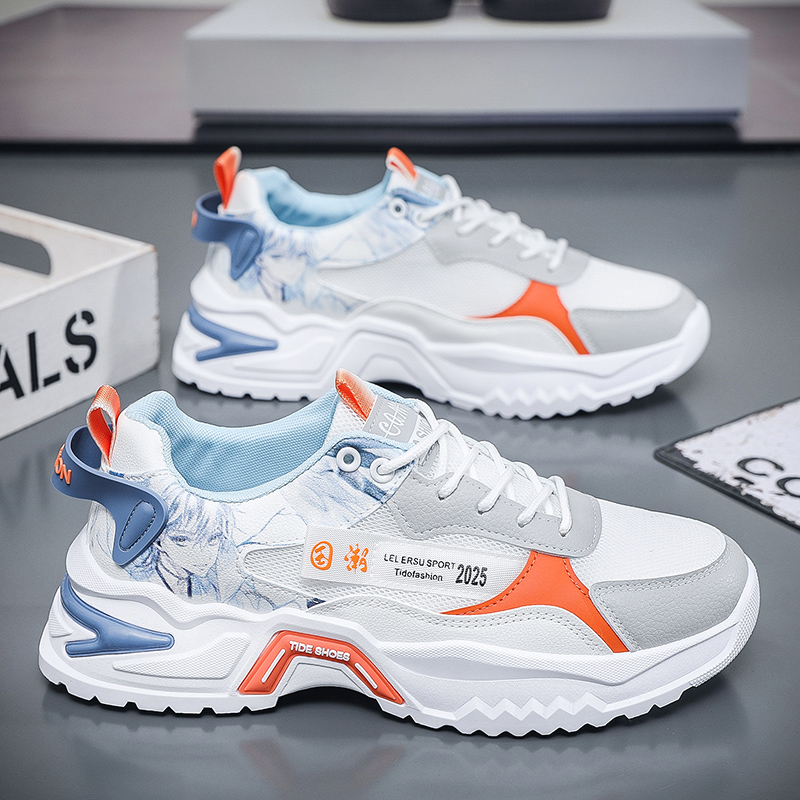 These trendy sports shoes combine style and functionality, designed for consumers who seek individuality and comfort. The upper is made of breathable mesh material, ensuring lightweight comfort, paired with bold graffiti patterns that showcase a unique streetwear style. The thick, anti-slip outsole offers excellent traction and stability, allowing you to move freely during daily wear or outdoor activities. The stylish color-blocking design and intricate detailing add a striking visual impact, making this a must-have fashion item for 2025. Whether for casual outings or fitness activities, these shoes meet your versatile needs and keep you effortlessly ahead of the fashion curve.