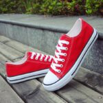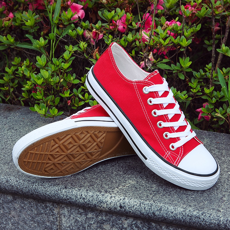 This classic red low-top canvas shoe is crafted with premium canvas material, offering lightweight breathability for all-day comfort. The durable rubber sole provides excellent grip and wear resistance, making it suitable for various occasions. Its minimalist design, featuring white laces and a rubber toe cap, adds a touch of style and pairs effortlessly with jeans, shorts, or casual skirts. Combining aesthetics and practicality, this pair is the perfect choice for daily wear, travel, or casual activities, giving your steps confidence and energy!