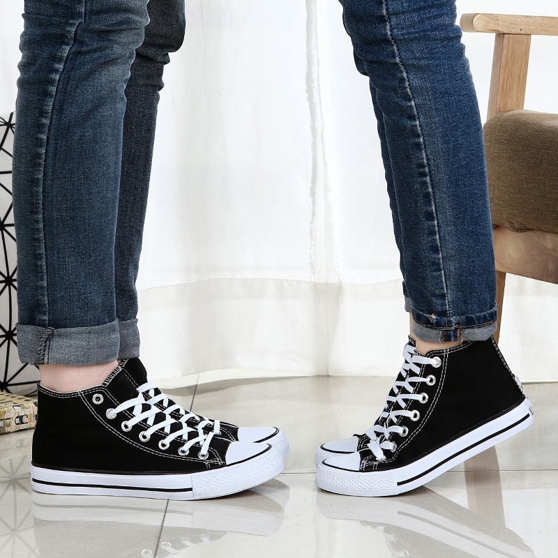“These classic black high-top canvas sneakers are the ultimate blend of timeless style and everyday comfort. Featuring a durable canvas upper, breathable design, and a sturdy rubber sole, they are perfect for casual outings or completing your streetwear look. With their unisex appeal and versatile design, these sneakers are a wardrobe essential, offering both style and functionality for any season.”