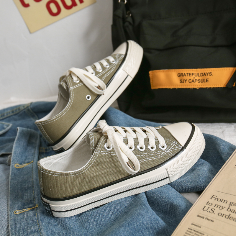 Product Name: Retro Army Green Low-Top Canvas Shoes
