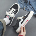 Fashion Men’s Sneakers Low Top Lace Up Outdoor Casual Shoes Flat Bottom Breathable Comfortable Canvas Shoes-vt111