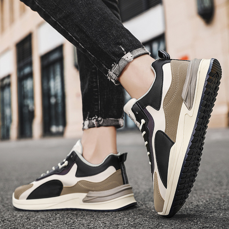 This stylish casual sneaker perfectly combines modern trends with comfort and performance. Made from high-quality materials, the shoe offers a durable and breathable upper for a lightweight and comfortable fit. Its unique patchwork design, paired with classic color combinations, showcases an urban casual style, making it ideal for various occasions, from daily commutes to casual outings. The outsole is crafted from anti-slip, wear-resistant rubber, providing stability and a comfortable walking experience. Let this modern and fashionable sneaker become an essential addition to your wardrobe!