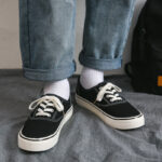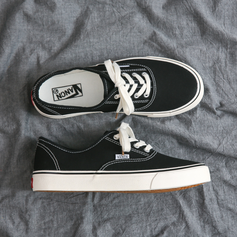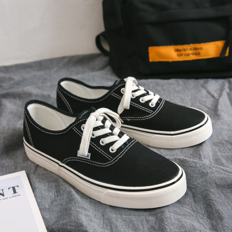 These low-top black canvas shoes feature a minimalist design, combining a classic black upper with white laces and detailed stitching, perfectly blending fashion and retro style. The upper is crafted from high-quality canvas material, ensuring breathability and lightweight comfort for all-day wear. The sturdy rubber outsole is durable, anti-slip, and provides excellent foot support for stability with every step. Whether for casual wear, campus style, or street fashion, these canvas shoes effortlessly match any outfit, making them a must-have wardrobe essential.