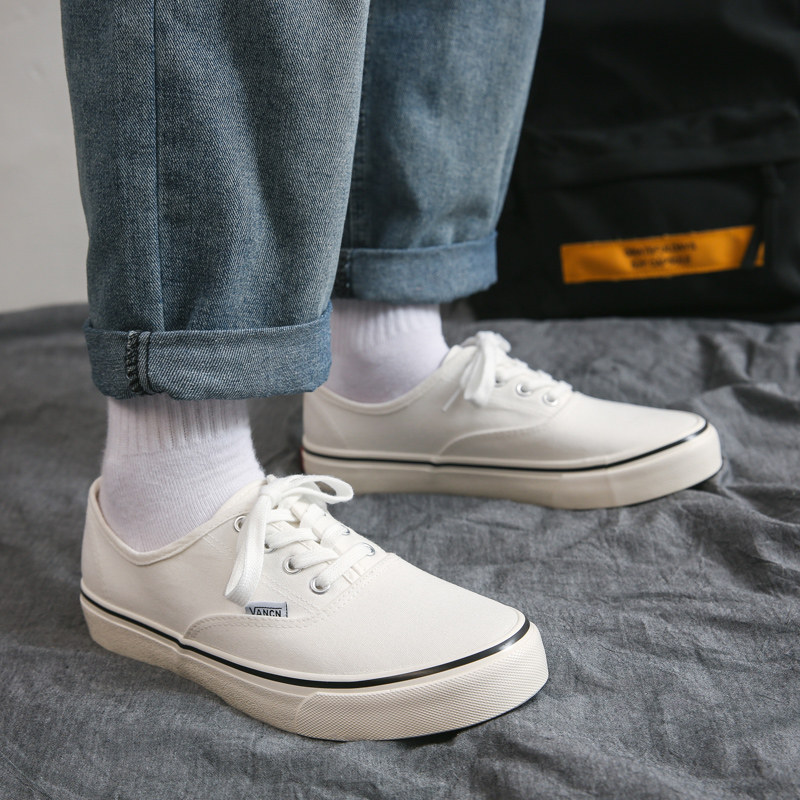 These low-top white canvas shoes feature a timeless minimalist design, showcasing classic fashion that never goes out of style. The upper is crafted from high-quality canvas material, offering breathable comfort for extended wear. The durable rubber outsole provides excellent anti-slip grip and wear resistance, ensuring stable support with every step. Accented with a subtle black trim, these shoes add a touch of understated style, perfect for casual wear, campus life, or street fashion. Whether paired with jeans, shorts, or skirts, these canvas shoes are the ultimate versatile wardrobe essential.