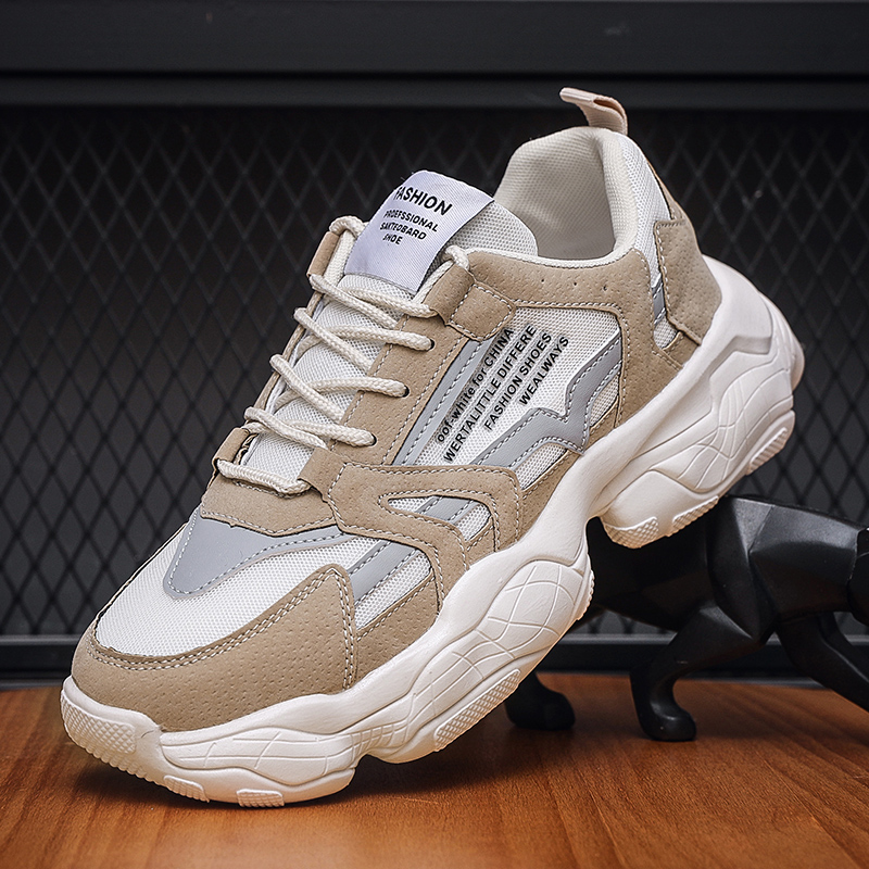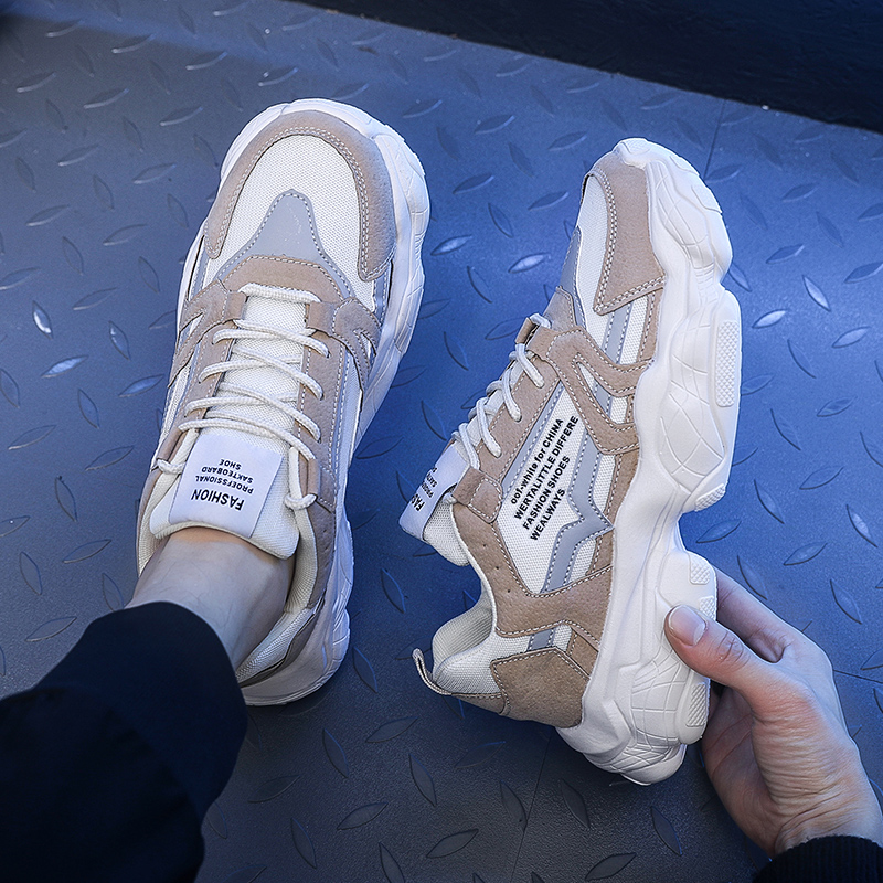 These retro chunky sneakers feature a classic design with a soft beige and light gray color palette, perfect for a variety of styles. The upper is crafted from premium suede and breathable mesh, combining a fashionable look with practical functionality. The thick sole design not only adds height but also provides exceptional cushioning, making it an ideal choice for daily wear or casual outings.