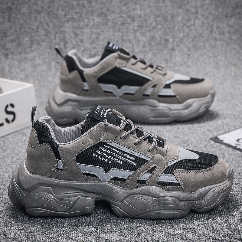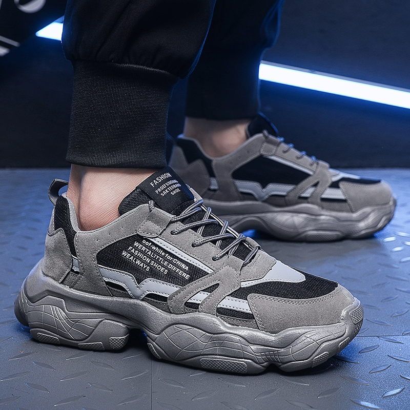 These sneakers perfectly combine style and functionality, featuring a chunky sole design paired with a classic gray and black color scheme for a minimalist yet trendy look. Suitable for various occasions, the upper is crafted from high-quality mesh and durable synthetic materials, providing excellent breathability and support. The thick sole structure ensures stable support and enhanced comfort.