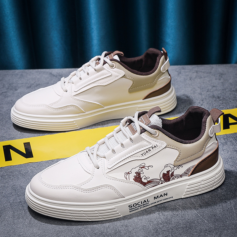 These sneakers perfectly combine style and comfort, designed for individuals who pursue both personality and trends. The upper is made of premium synthetic material, lightweight and breathable, paired with a classic white design for a clean and elegant look. The unique ink-inspired pattern on the side blends traditional and modern aesthetics, showcasing artistic flair and refined taste.