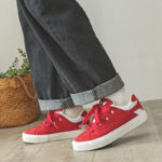These red sporty canvas shoes perfectly blend energy and style, designed for those who value fashion and comfort. The upper combines premium suede and mesh materials, offering a soft touch and breathable comfort for all-day wear. The vibrant red color paired with wide laces adds a bold, standout look, ensuring you make a statement wherever you go. The anti-slip, wear-resistant rubber sole provides excellent traction and stability, making them suitable for casual outings, workouts, or streetwear styling. Whether paired with jeans, sportswear, or trendy street fashion, these canvas shoes are the perfect highlight for your outfit.