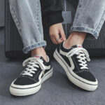 These classic black and white sneakers blend timeless style with modern comfort, making them a wardrobe essential for anyone seeking practicality and trendiness.