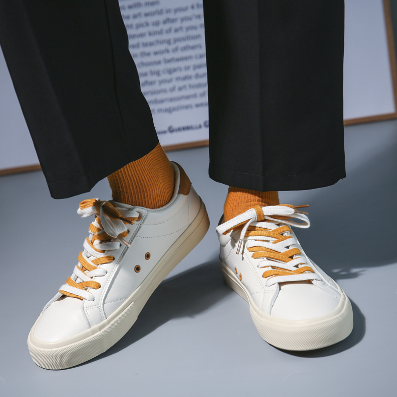These minimalist and stylish white casual shoes feature thoughtful details with vibrant yellow laces and heel accents, instantly enhancing your overall look with a touch of modern flair. The upper is crafted from high-quality synthetic leather, offering a smooth texture that is durable and easy to clean. The soft, comfortable lining combined with a lightweight sole provides all-day comfort, while the anti-slip, wear-resistant rubber outsole ensures excellent grip and stability for confident steps wherever you go. The clean white and lively yellow color combination makes these shoes a versatile addition to any wardrobe, pairing effortlessly with casual, work, or streetwear styles.