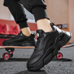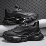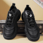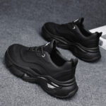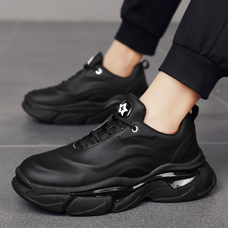 These stylish all-black chunky sneakers perfectly blend modern fashion design with exceptional comfort. The sleek shoe lines paired with high-quality synthetic leather material create a subtle yet luxurious texture, ideal for daily casual wear and street-style outfits. The thick cushioned sole offers excellent foot support, ensuring a comfortable walking experience. Whether paired with jeans, casual trousers, or athletic wear, these classic and versatile black sneakers effortlessly showcase your unique fashion sense and stand-out attitude. Get yours now and step into the trend!