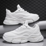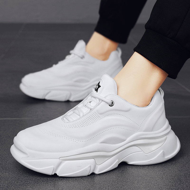 These all-white chunky sneakers stand out with their sleek and minimalistic design, perfectly blending modern trends with ultimate comfort. The upper is crafted from high-quality breathable materials, featuring smooth, streamlined lines that ensure all-day wearability without discomfort. The thick rubber sole provides excellent grip and stability while subtly elongating the legs for a stylish height-boosting effect. Whether for casual streetwear or everyday outings, these versatile sneakers are a must-have, combining lightweight comfort with effortless style to showcase your confidence anywhere, anytime!