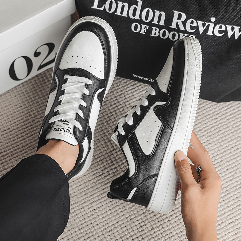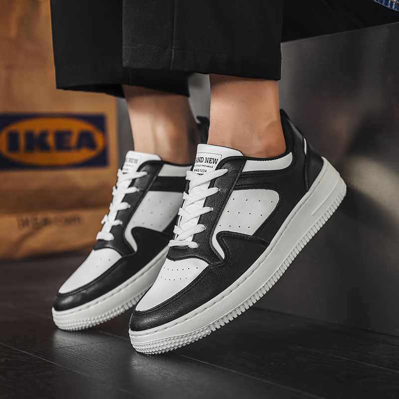 This black and white casual sneaker combines fashion and comfort, delivering an urban streetwear style. Made with high-quality synthetic leather and breathable materials, it ensures durability and all-day comfort. The classic black and white color design makes it versatile to match any outfit, perfect for daily casual wear, street style, or light sports activities. The outsole features a non-slip rubber design, providing excellent grip and stability for safe and comfortable walking. Whether paired with jeans, shorts, or sportswear, this sneaker is a must-have item to complete your wardrobe for any occasion. Grab yours now and elevate your style game!