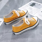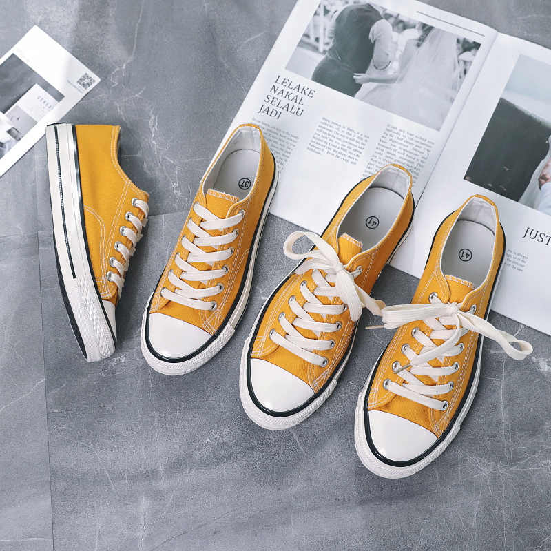 These classic yellow canvas shoes are made of high-quality canvas material, providing a soft, comfortable, and highly breathable experience, ideal for long hours of wear. The simple and elegant design combined with a durable rubber sole offers reliable anti-slip protection for your daily activities. Whether for casual streetwear, campus life, or outdoor adventures, these versatile canvas shoes can easily match any style, adding a touch of fashion to your look. The delicate stitching details on the upper and sole showcase exceptional craftsmanship, allowing you to express your unique style effortlessly in any setting.