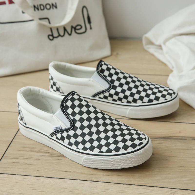 Fashion black and white color scheme walking style vulcanized shoes low top canvas trend shoes-vt59